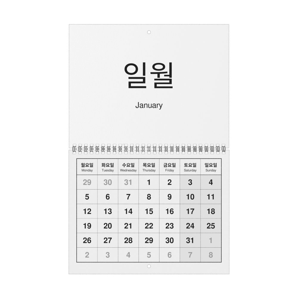 2026 Wall CalendarKorean/English-Labeled, Monday-Start Layout, Wire-Bound, 11 x 8.5 in (27.9 x 21.6 cm)