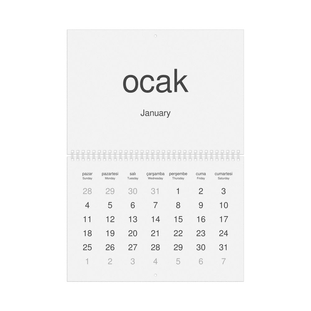 2026 Wall Calendar, Turkish-Labeled, Monday-Start Layout, Wire-Bound, 11.7 x 8.3 in (29.7 x 21.0 cm)