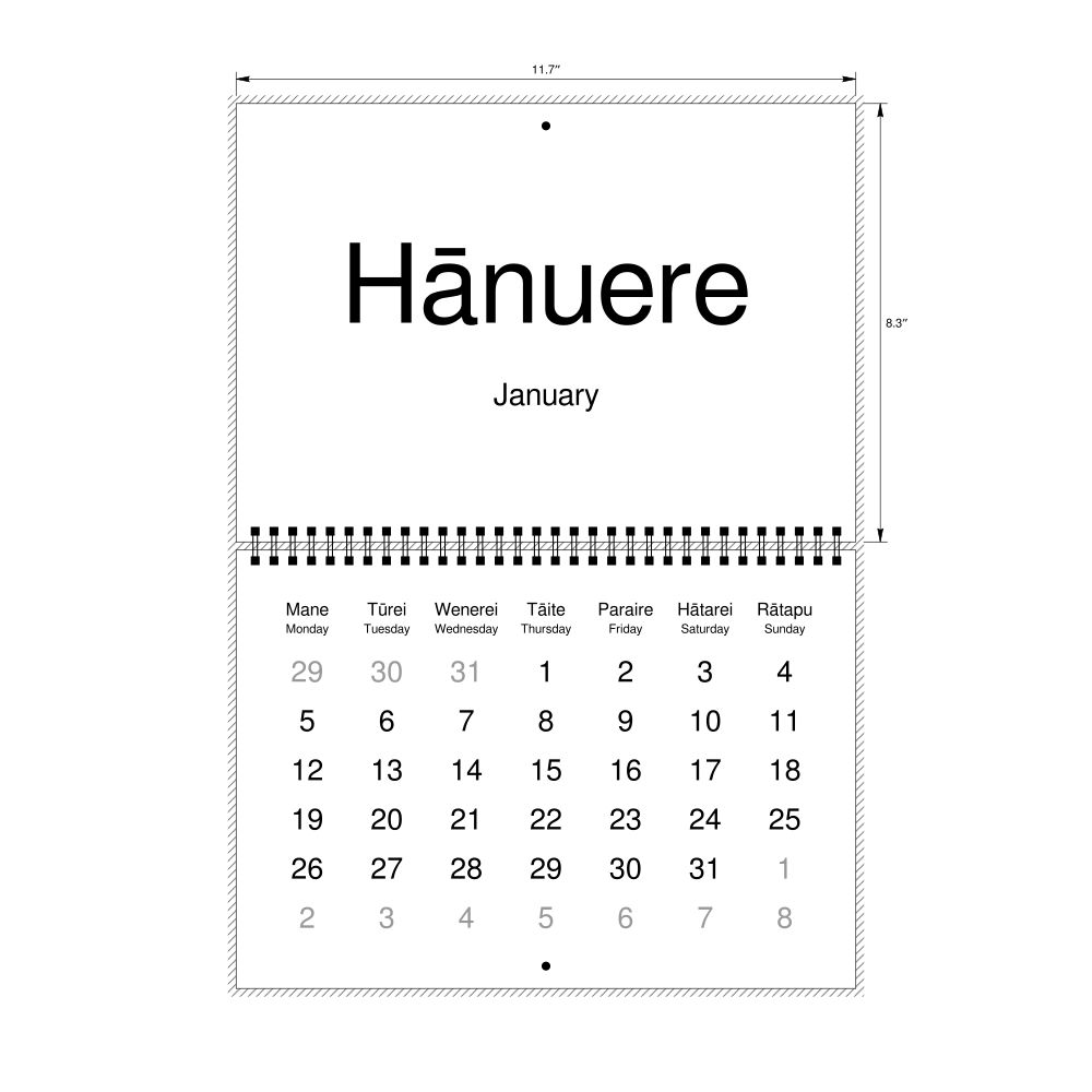 2026 Wall Calendar, Māori-Labeled, Sunday-Start Layout, Wire-Bound, 11.7 x 8.3 in (29.7 x 21.0 cm)