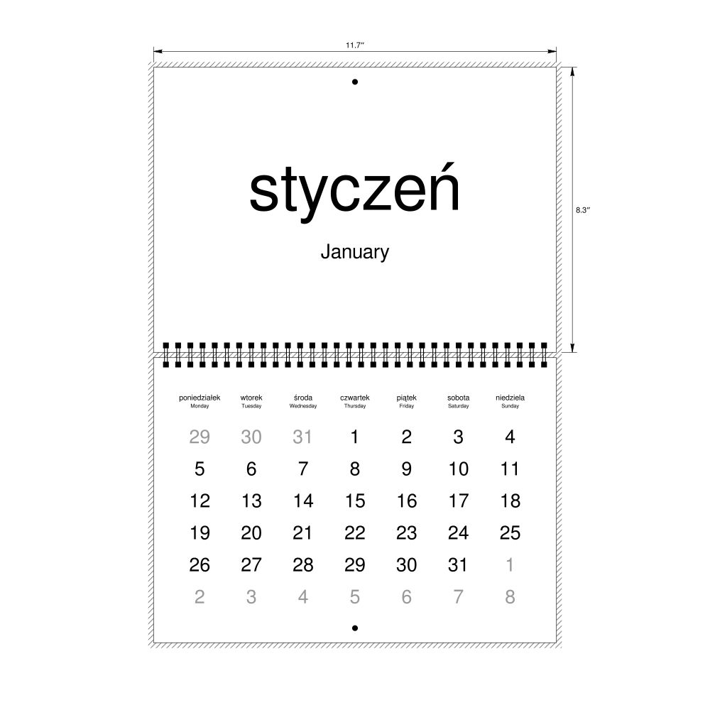 2026 Wall CalendarPolish/English-Labeled, Monday-Start Layout, Wire-Bound, 11.7 x 8.3 in (29.7 x 21.0 cm)