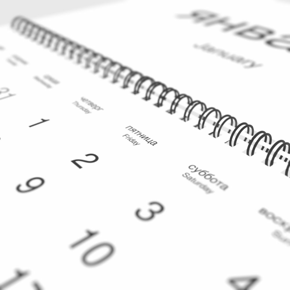 2026 Wall CalendarRussian/English-Labeled, Monday-Start Layout, Wire-Bound, 11.7 x 8.3 in (29.7 x 21.0 cm)