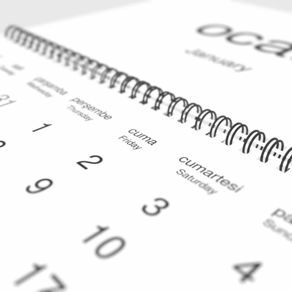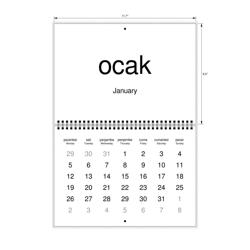 2026 Wall CalendarTurkish/English-Labeled, Monday-Start Layout, Wire-Bound, 11.7 x 8.3 in (29.7 x 21.0 cm)