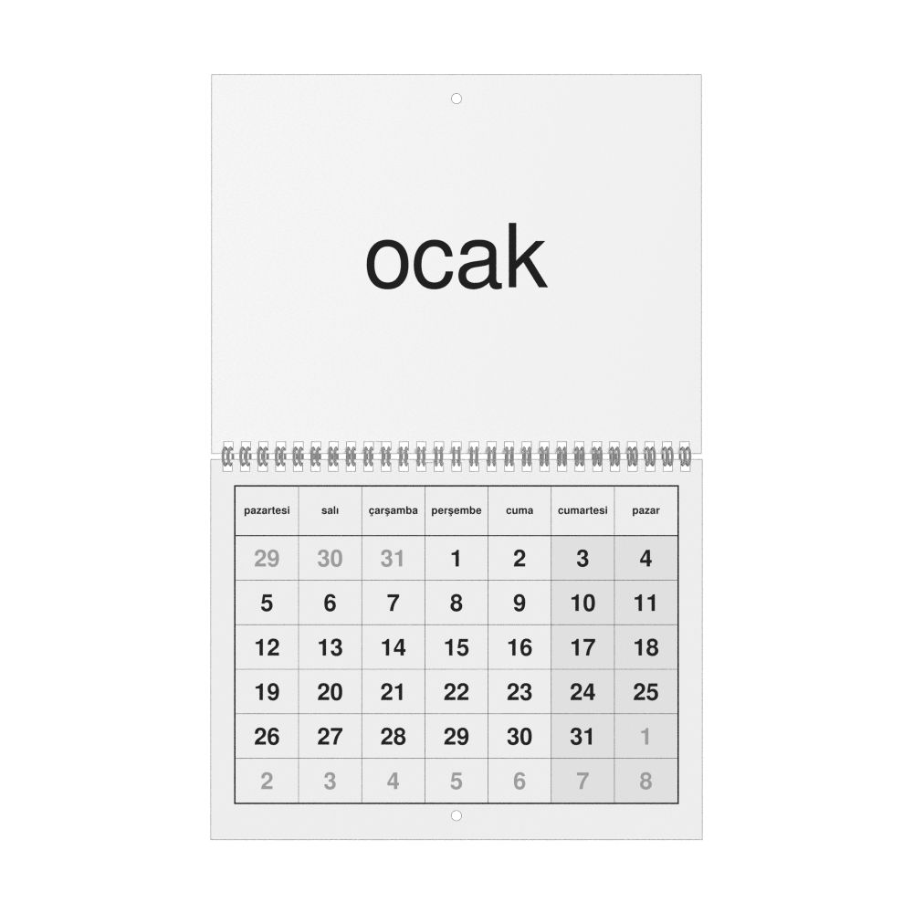 This calendar features the Turkish names of months and days of the week on top of a standard Gregorian calendar layout. Beyond its utility for tracking dates, it serves as an educational tool, cultural touchstone (cultural artifact), and functional decor (aesthetic object).