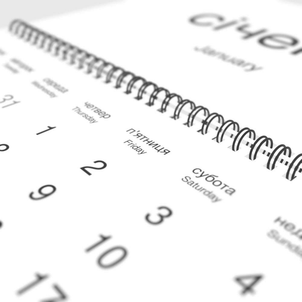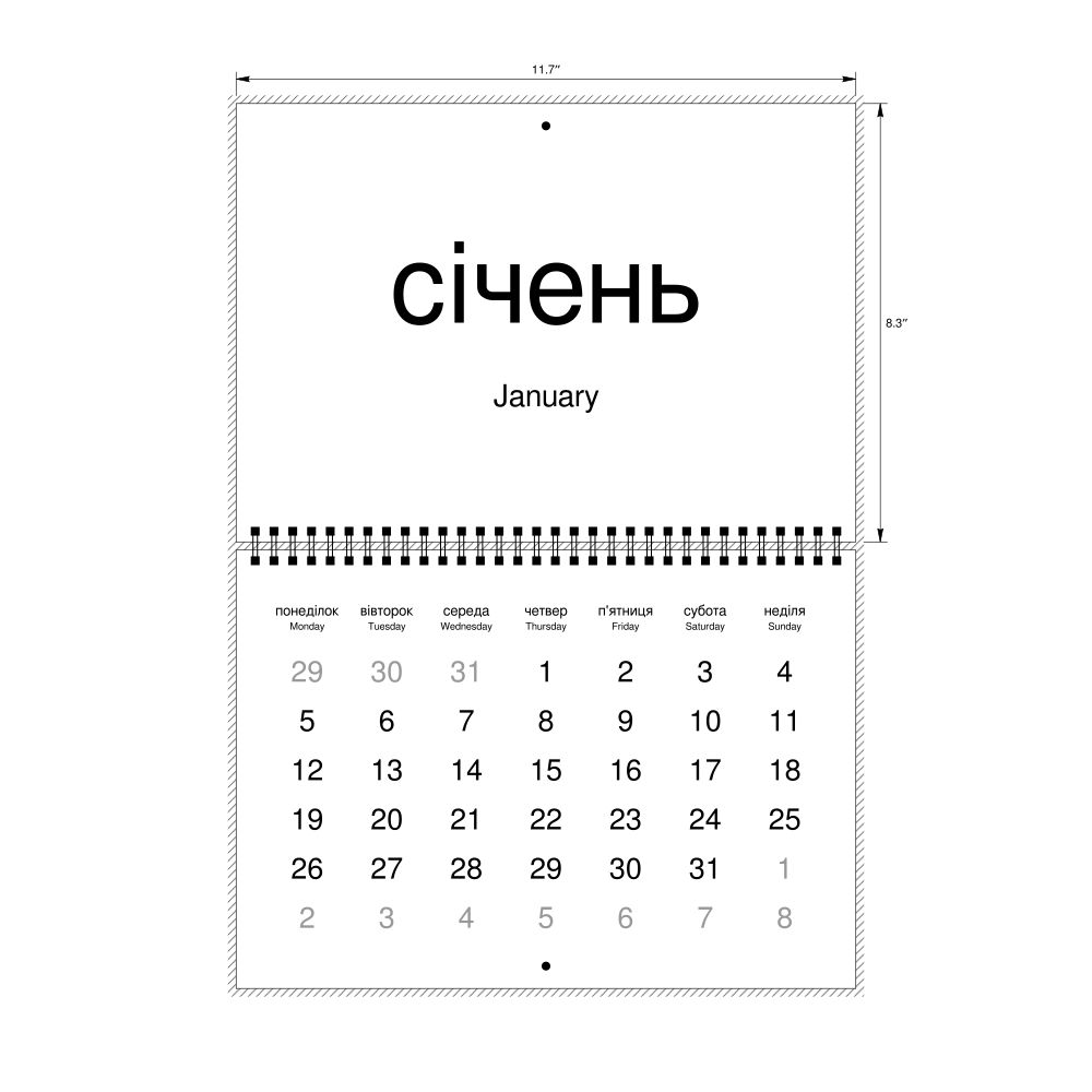 2026 Wall CalendarUkrainian/English-Labeled, Monday-Start Layout, Wire-Bound, 11.7 x 8.3 in (29.7 x 21.0 cm)
