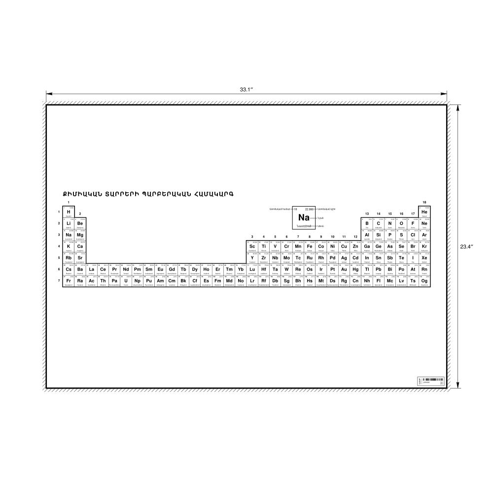 Periodic Table Chart33.1 x 23.4 in (84.1 x 59.4 cm, Poster / Wall Chart), 32-Column Layout, Armenian-Labeled