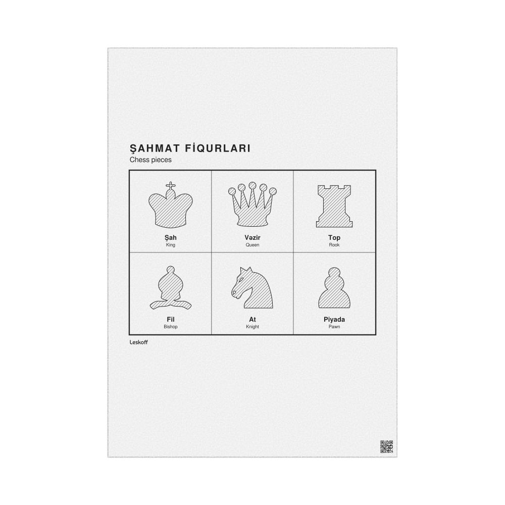 Chess Pieces PosterAzerbaijani/English-Labeled
