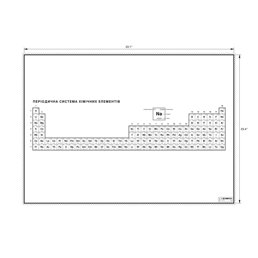 Periodic Table Chart33.1 x 23.4 in (84.1 x 59.4 cm, Poster / Wall Chart), 32-Column Layout, Ukrainian-Labeled