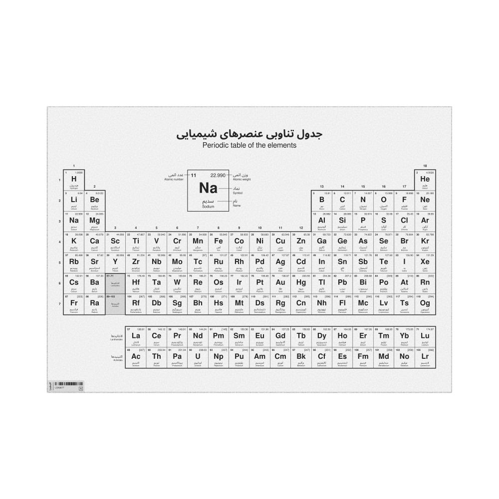 Periodic Table Chart33.1 x 23.4 in (84.1 x 59.4 cm, Poster / Wall Chart), 18-Column Layout, Persian/English-Labeled