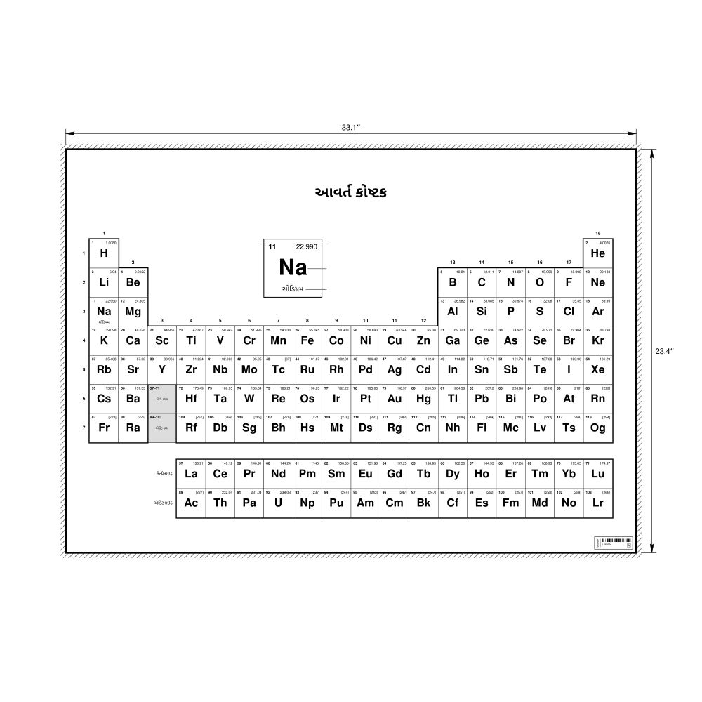 Periodic Table Chart33.1 x 23.4 in (84.1 x 59.4 cm, Poster / Wall Chart), 18-Column Layout, Gujarati-Labeled