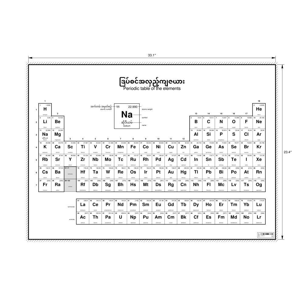 Periodic Table Chart33.1 x 23.4 in (84.1 x 59.4 cm, Poster / Wall Chart), 18-Column Layout, Burmese/English-Labeled