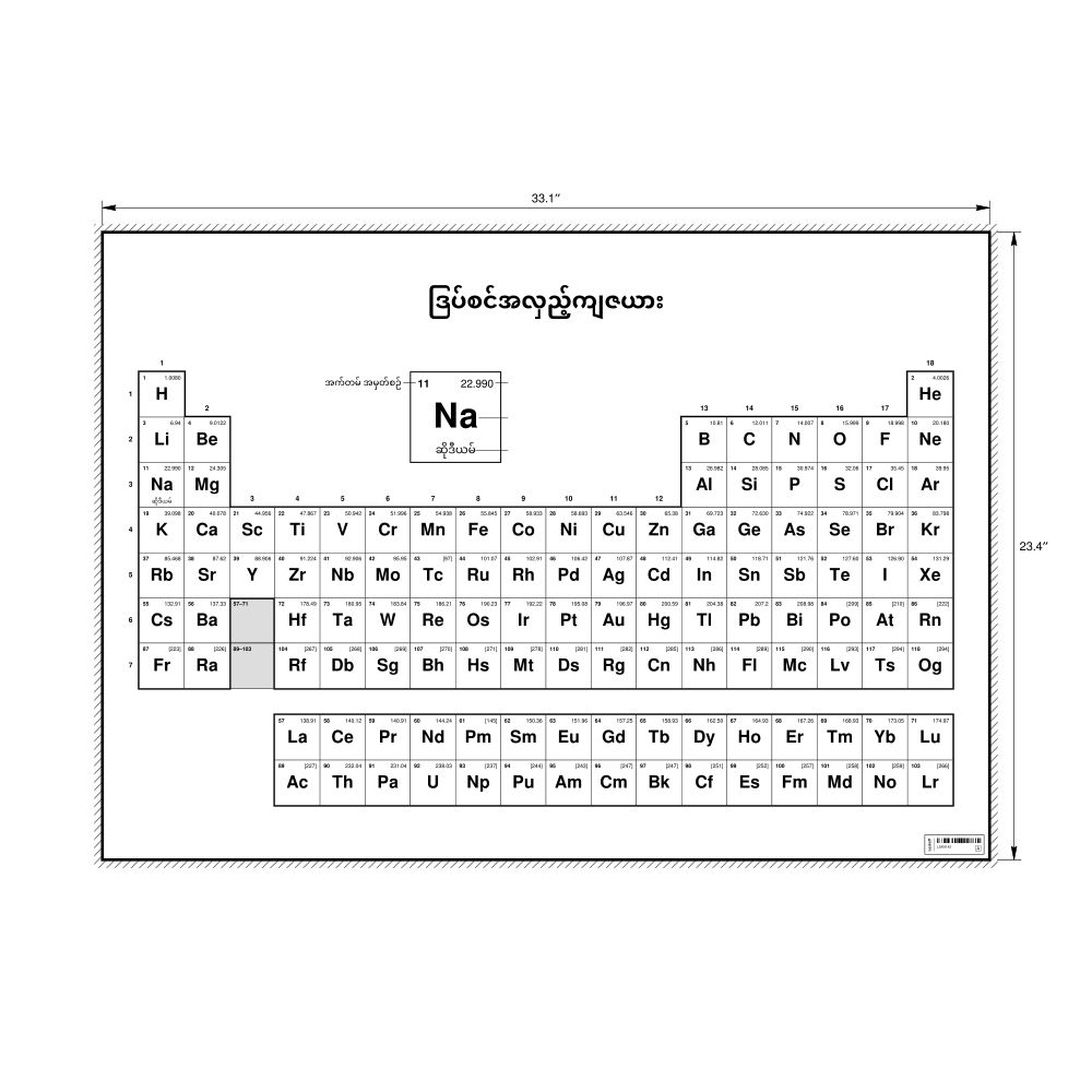 Periodic Table Chart33.1 x 23.4 in (84.1 x 59.4 cm, Poster / Wall Chart), 18-Column Layout, Burmese-Labeled