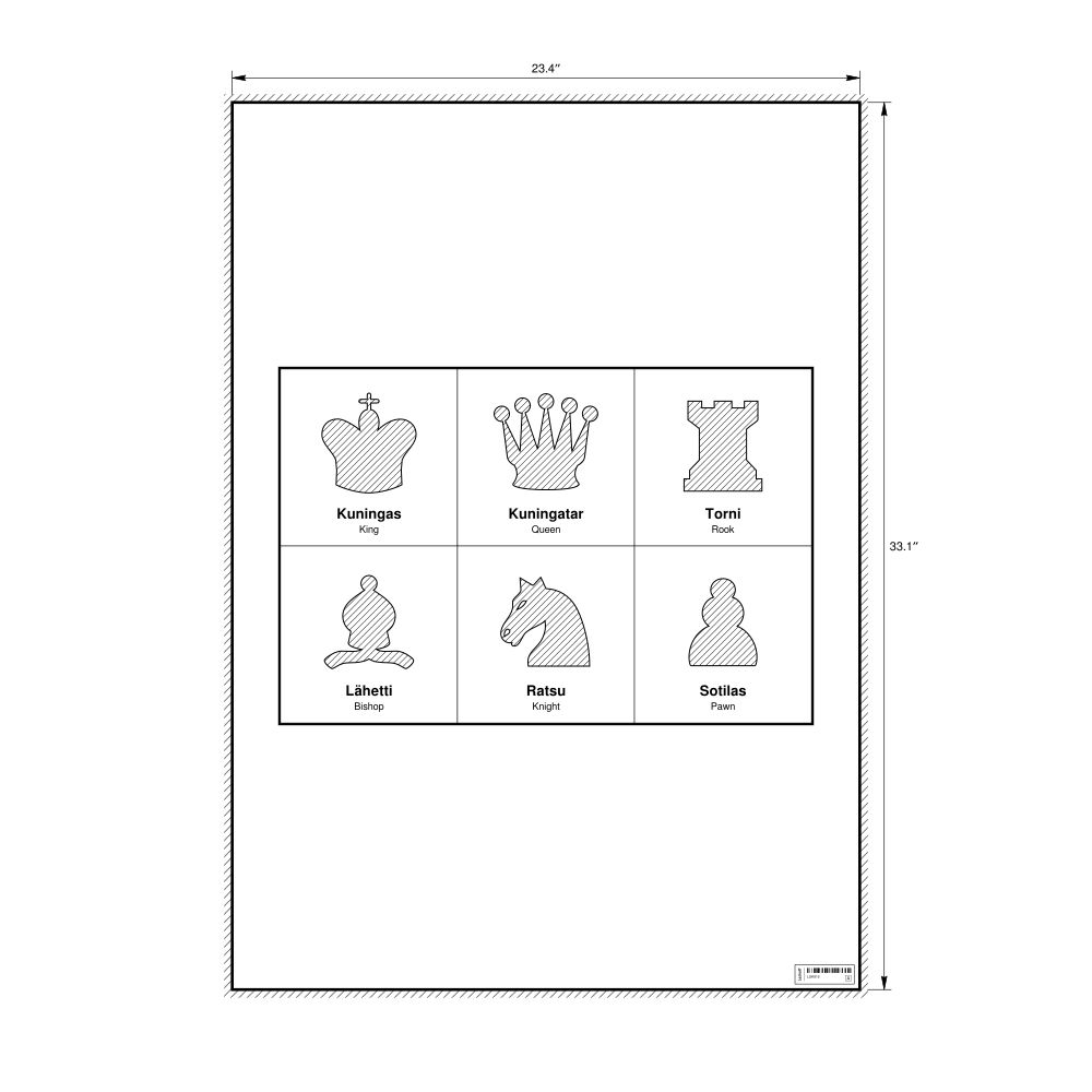 A poster of the chess pieces in Finnish (Šakkinappula) with English translations.