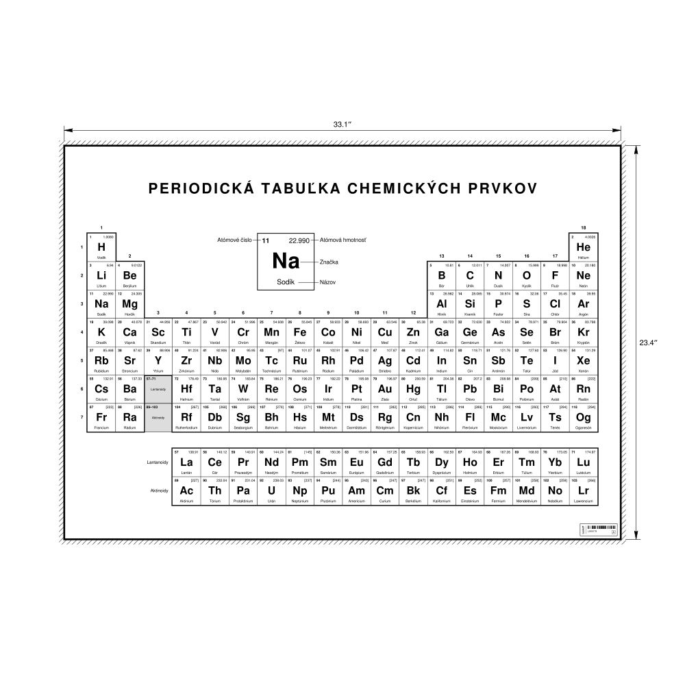 Periodic Table Chart33.1 x 23.4 in (84.1 x 59.4 cm, Poster / Wall Chart), 18-Column Layout, Slovak-Labeled
