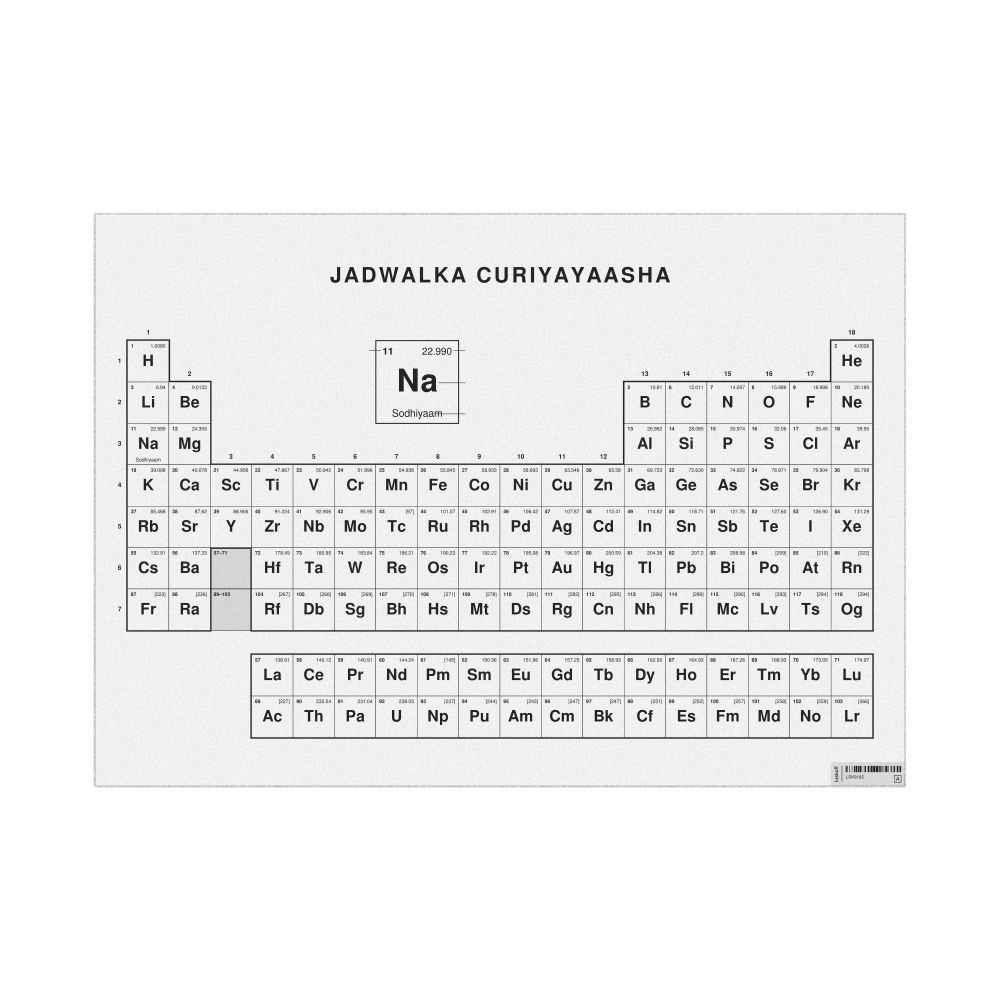 Periodic Table Chart33.1 x 23.4 in (84.1 x 59.4 cm, Poster / Wall Chart), 18-Column Layout, Somali-Labeled