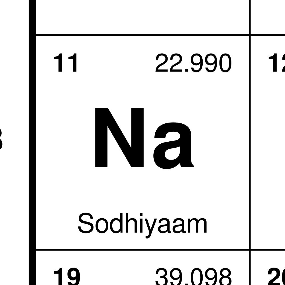 A Somali-language periodic table of the elements.