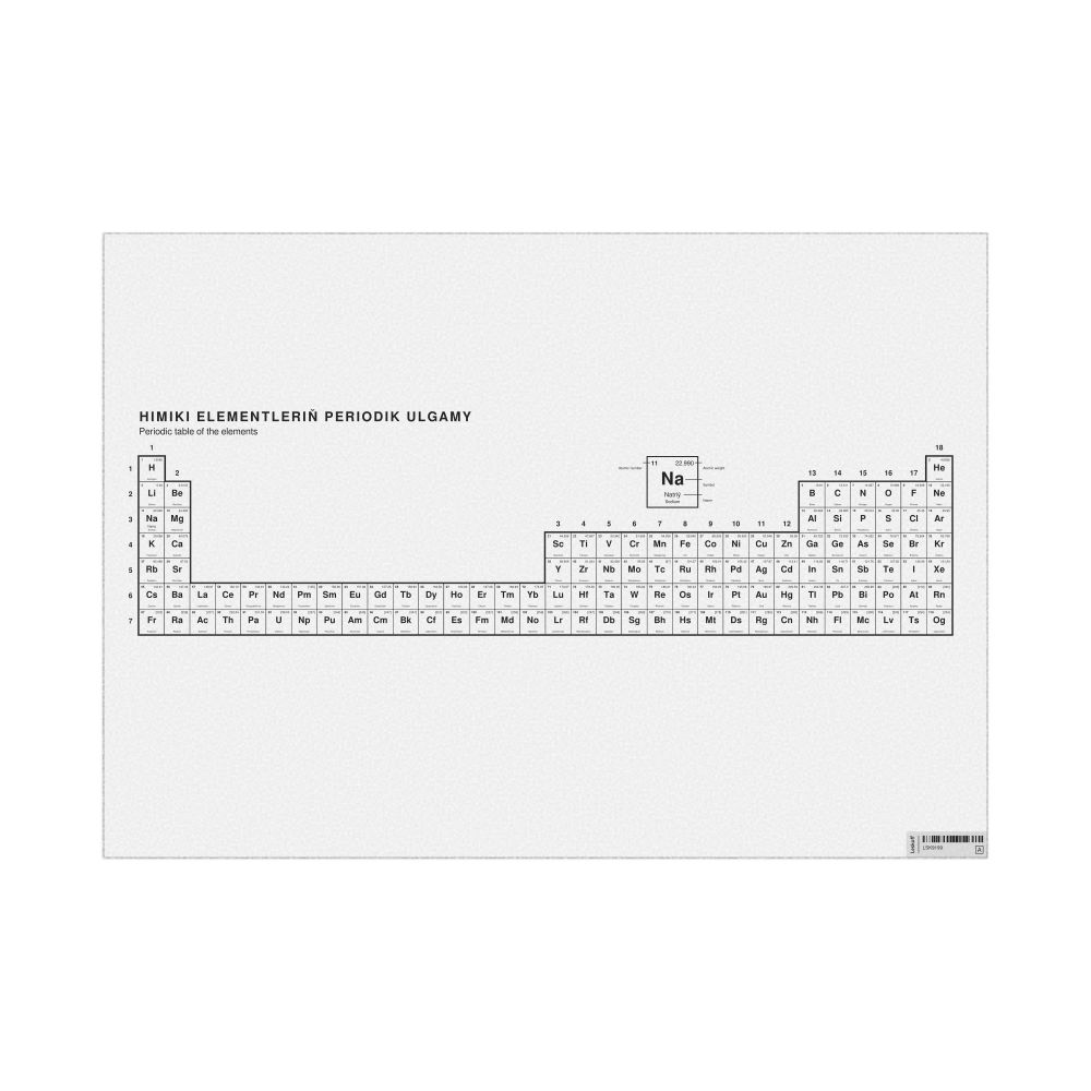 Periodic Table Chart33.1 x 23.4 in (84.1 x 59.4 cm, Poster / Wall Chart), 32-Column Layout, Turkmen/English-Labeled
