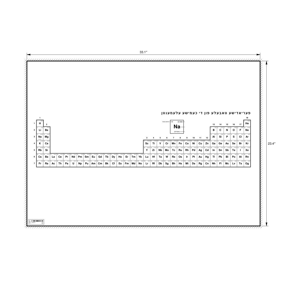 Periodic Table Chart33.1 x 23.4 in (84.1 x 59.4 cm, Poster / Wall Chart), 32-Column Layout, Yiddish-Labeled