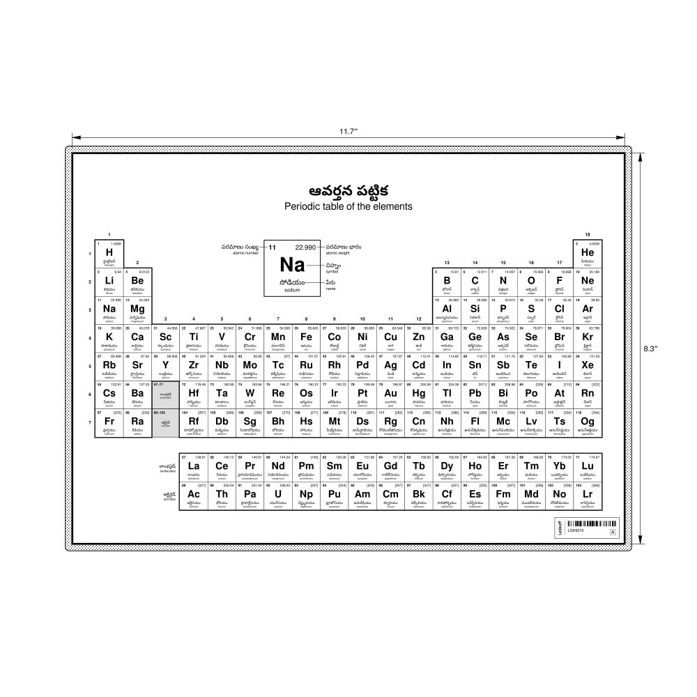 Periodic Table Chart11.7 x 8.3 in (29.7 x 21.0 cm, Desk Chart, Laminated), 18-Column Layout, Telugu/English-Labeled