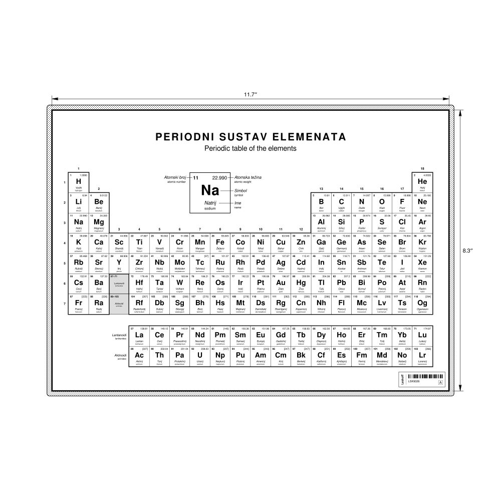 Periodic Table Chart11.7 x 8.3 in (29.7 x 21.0 cm, Desk Chart, Laminated), 18-Column Layout, Croatian/English-Labeled