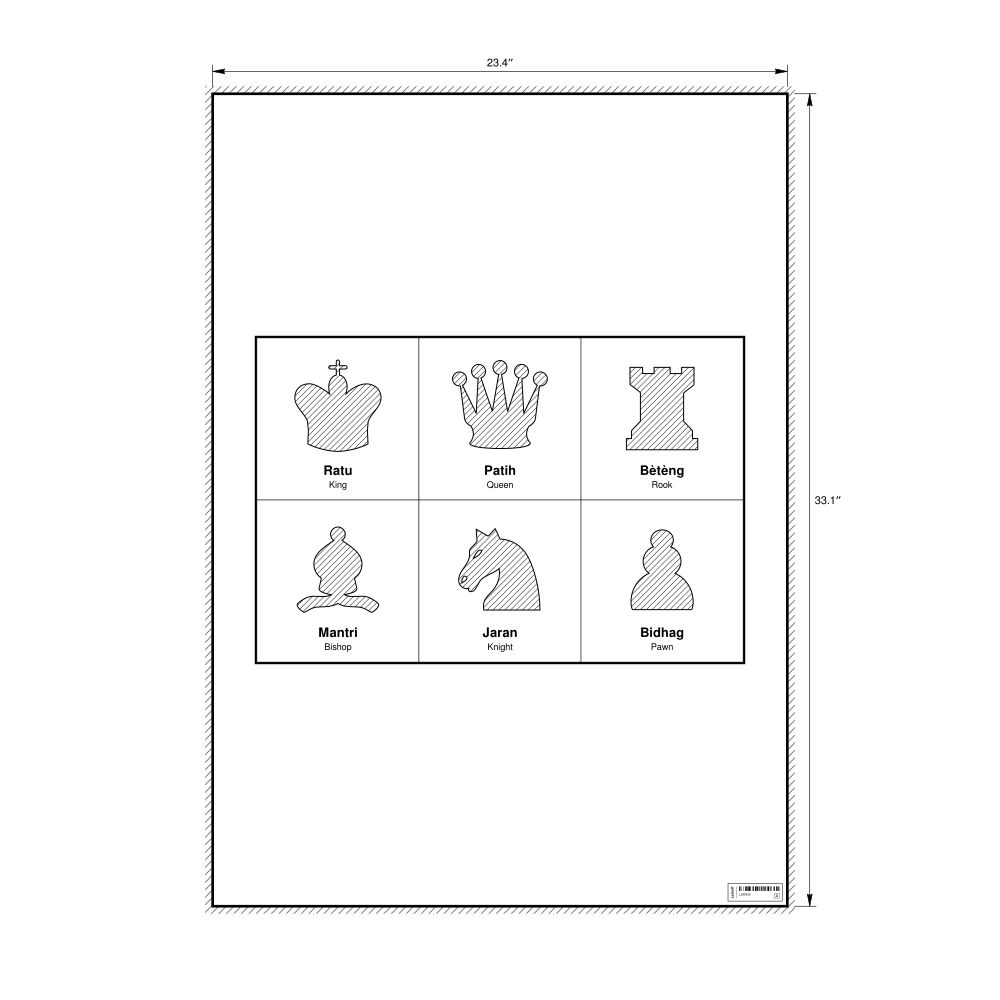 A poster of the chess pieces in Javanese (Wong-wongan catur) with English translations.