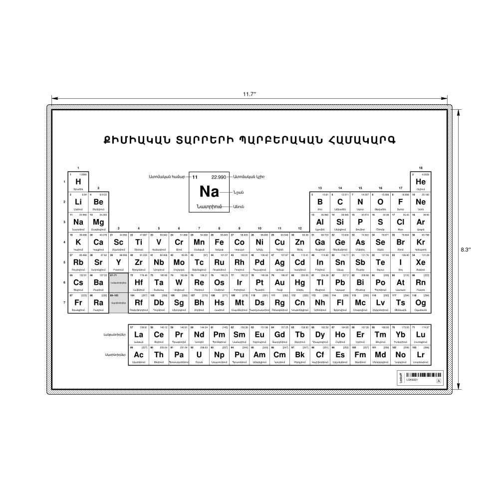 Periodic Table Chart11.7 x 8.3 in (29.7 x 21.0 cm, Desk Chart, Laminated), 18-Column Layout, Armenian-Labeled