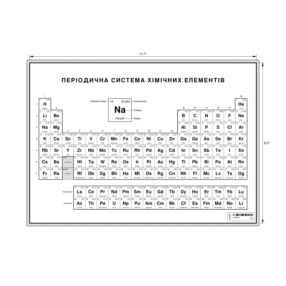 Periodic Table Chart11.7 x 8.3 in (29.7 x 21.0 cm, Desk Chart, Laminated), 18-Column Layout, Ukrainian-Labeled