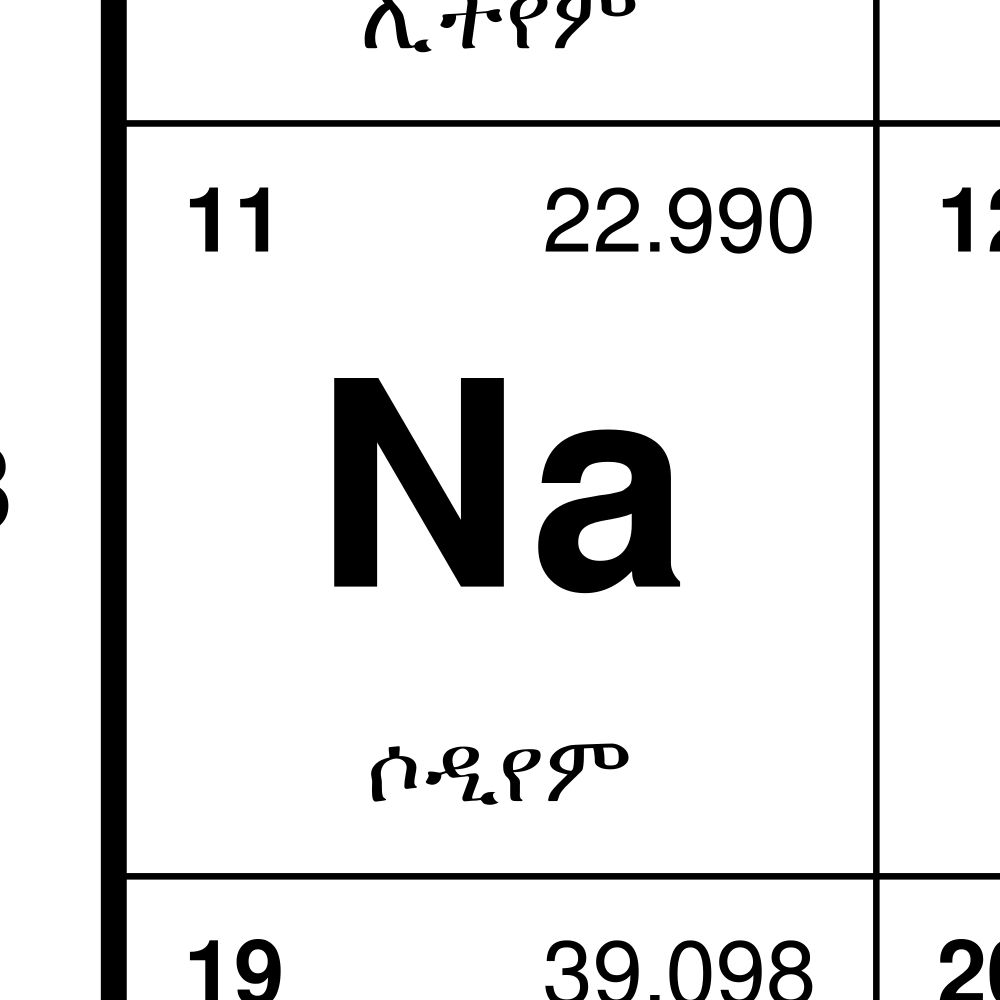 Periodic Table Chart, 33.1 x 23.4 in (84.1 x 59.4 cm, Poster / Wall Chart), 32-Column Layout, Amharic-Labeled