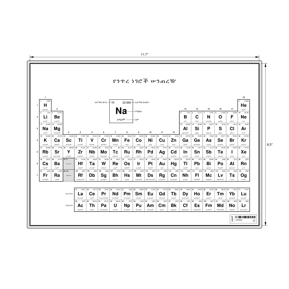Periodic Table Chart11.7 x 8.3 in (29.7 x 21.0 cm, Desk Chart, Laminated), 18-Column Layout, Amharic-Labeled