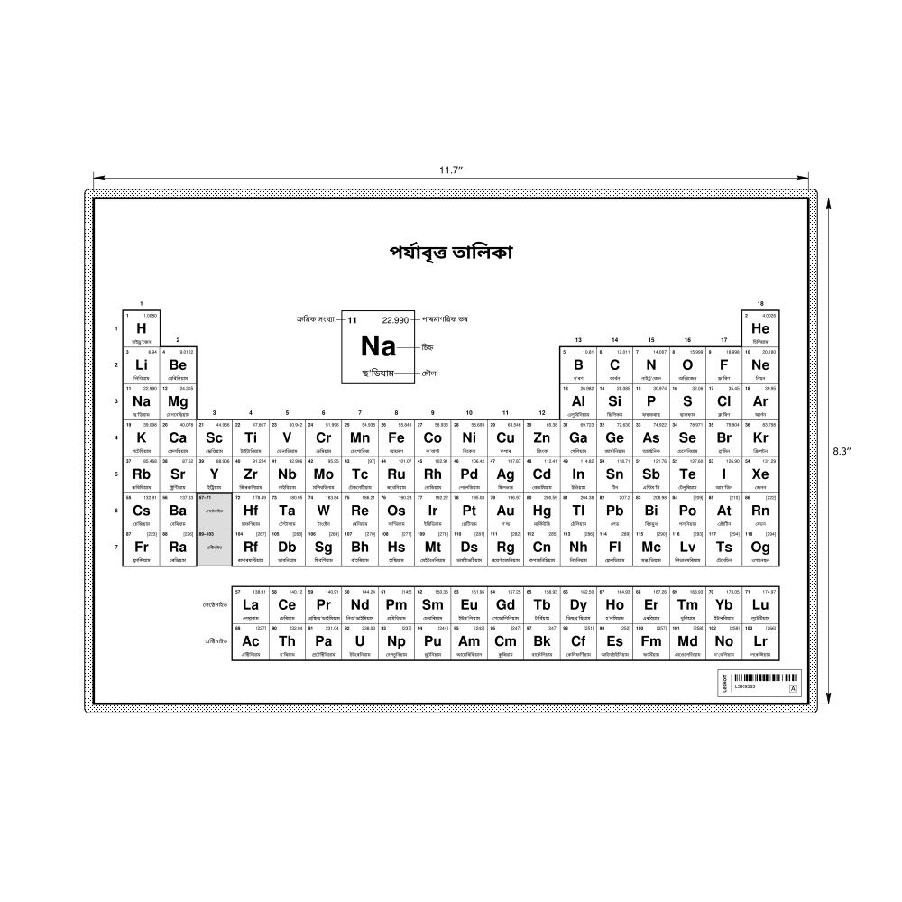 Periodic Table Chart11.7 x 8.3 in (29.7 x 21.0 cm, Desk Chart, Laminated), 18-Column Layout, Assamese-Labeled
