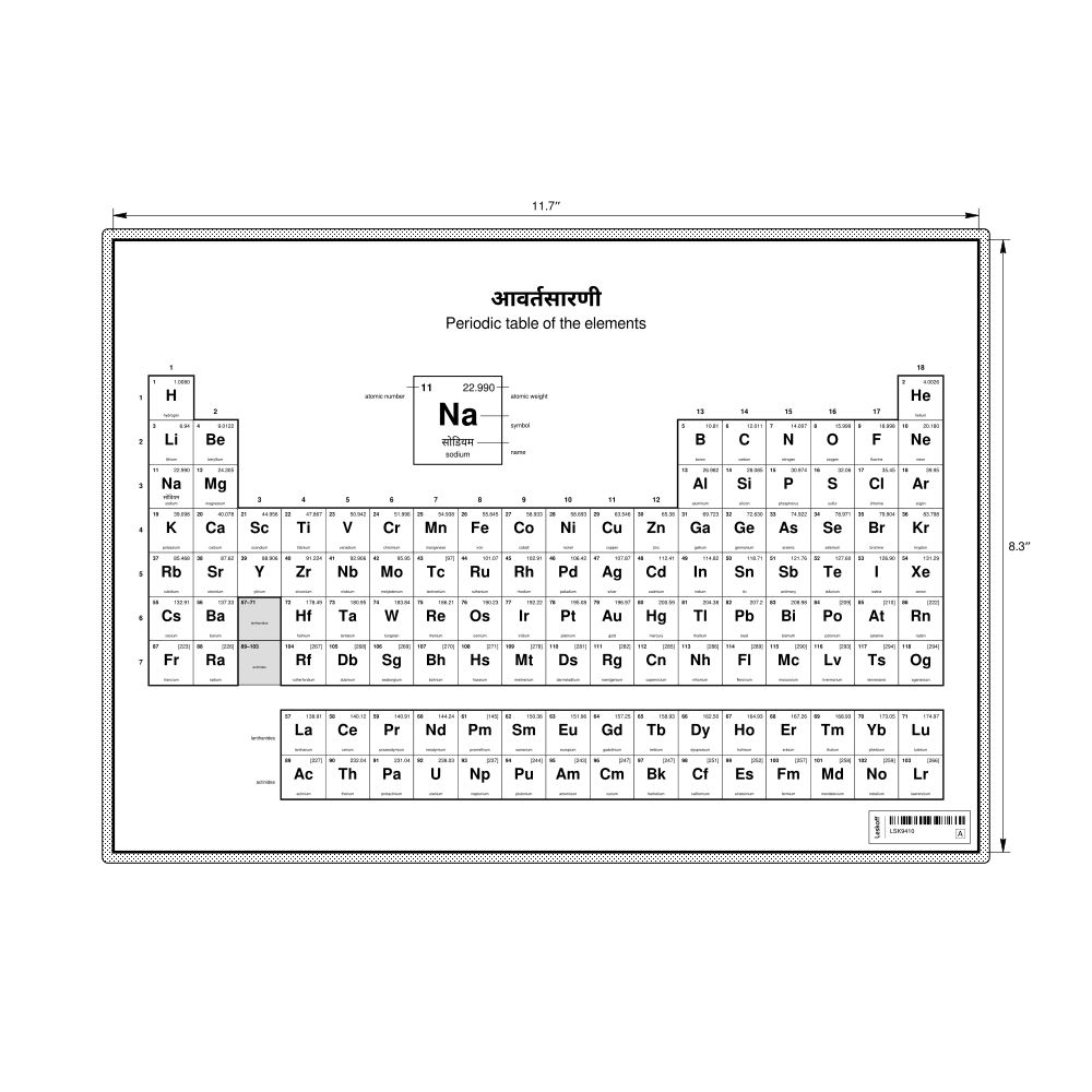 Periodic Table Chart11.7 x 8.3 in (29.7 x 21.0 cm, Desk Chart, Laminated), 18-Column Layout, Sanskrit/English-Labeled