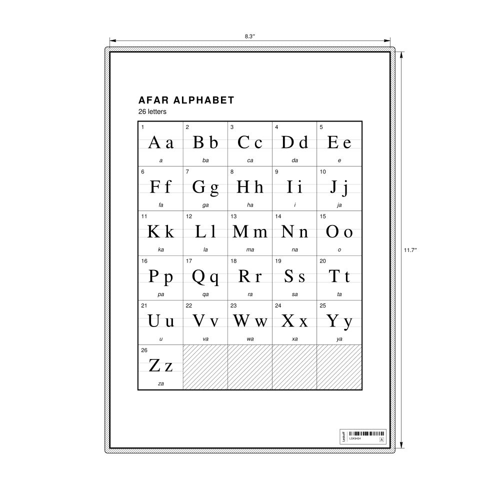 Afar Alphabet Chart8.3 x 11.7 in (21.0 x 29.7 cm, Desk Chart, Laminated)