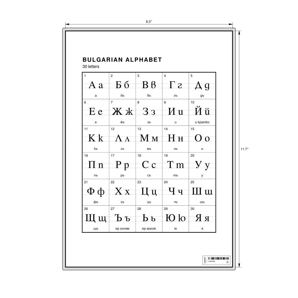 Bulgarian Alphabet Chart8.3 x 11.7 in (21.0 x 29.7 cm, Desk Chart, Laminated)