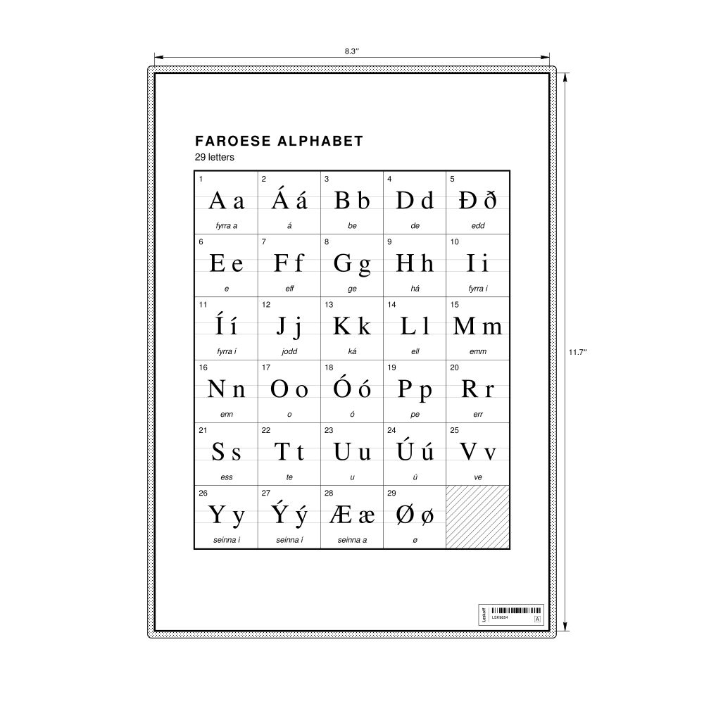 Faroese Alphabet Chart8.3 x 11.7 in (21.0 x 29.7 cm, Desk Chart, Laminated)