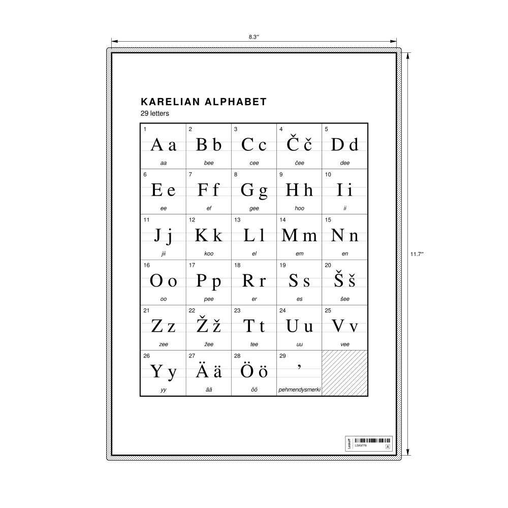 Karelian Alphabet Chart8.3 x 11.7 in (21.0 x 29.7 cm, Desk Chart, Laminated)
