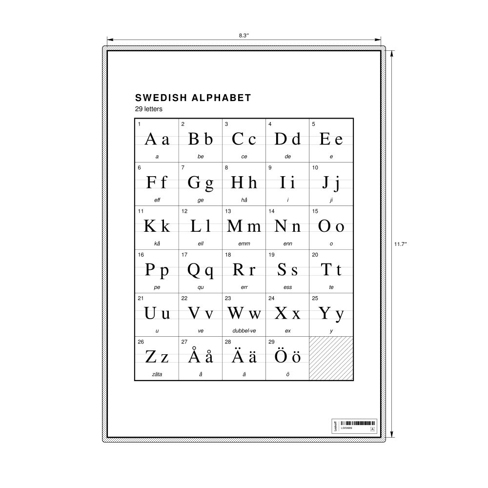 Swedish Alphabet Chart8.3 x 11.7 in (21.0 x 29.7 cm, Desk Chart, Laminated)