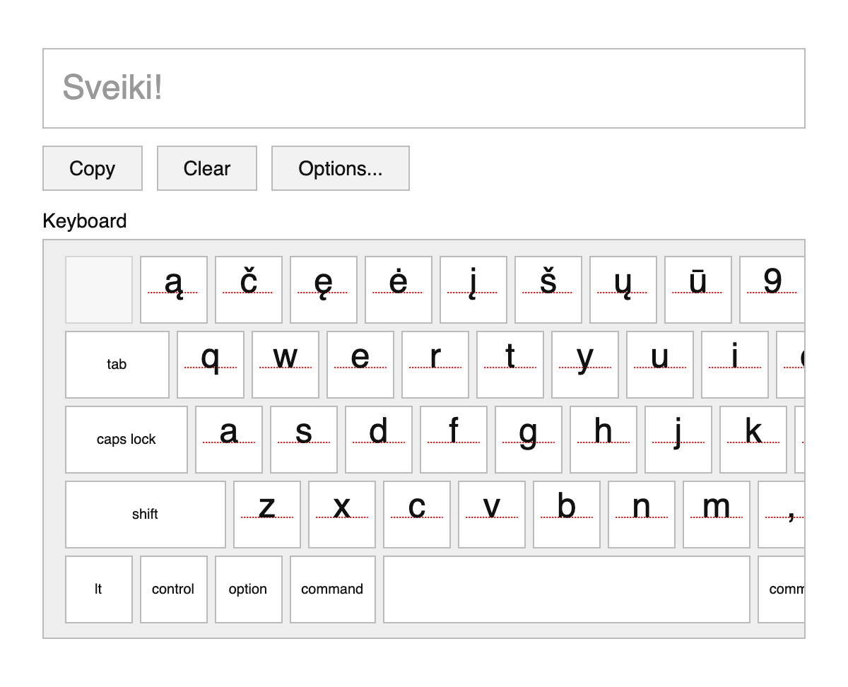 An on-screen/virtual Lithuanian keyboard for typing Lithuanian text.