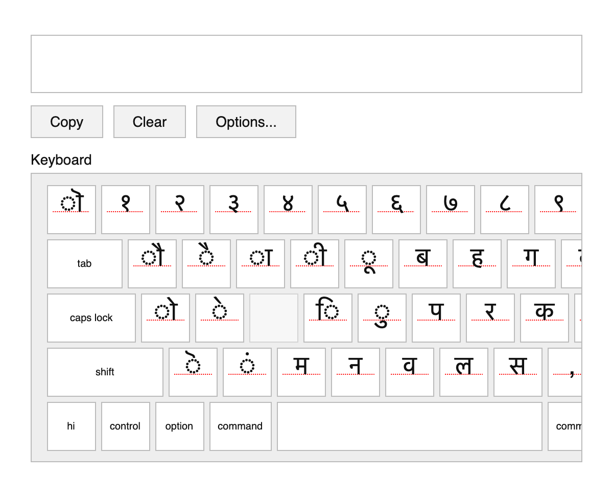 An on-screen/virtual Devanagari keyboard for typing Devanagari text.