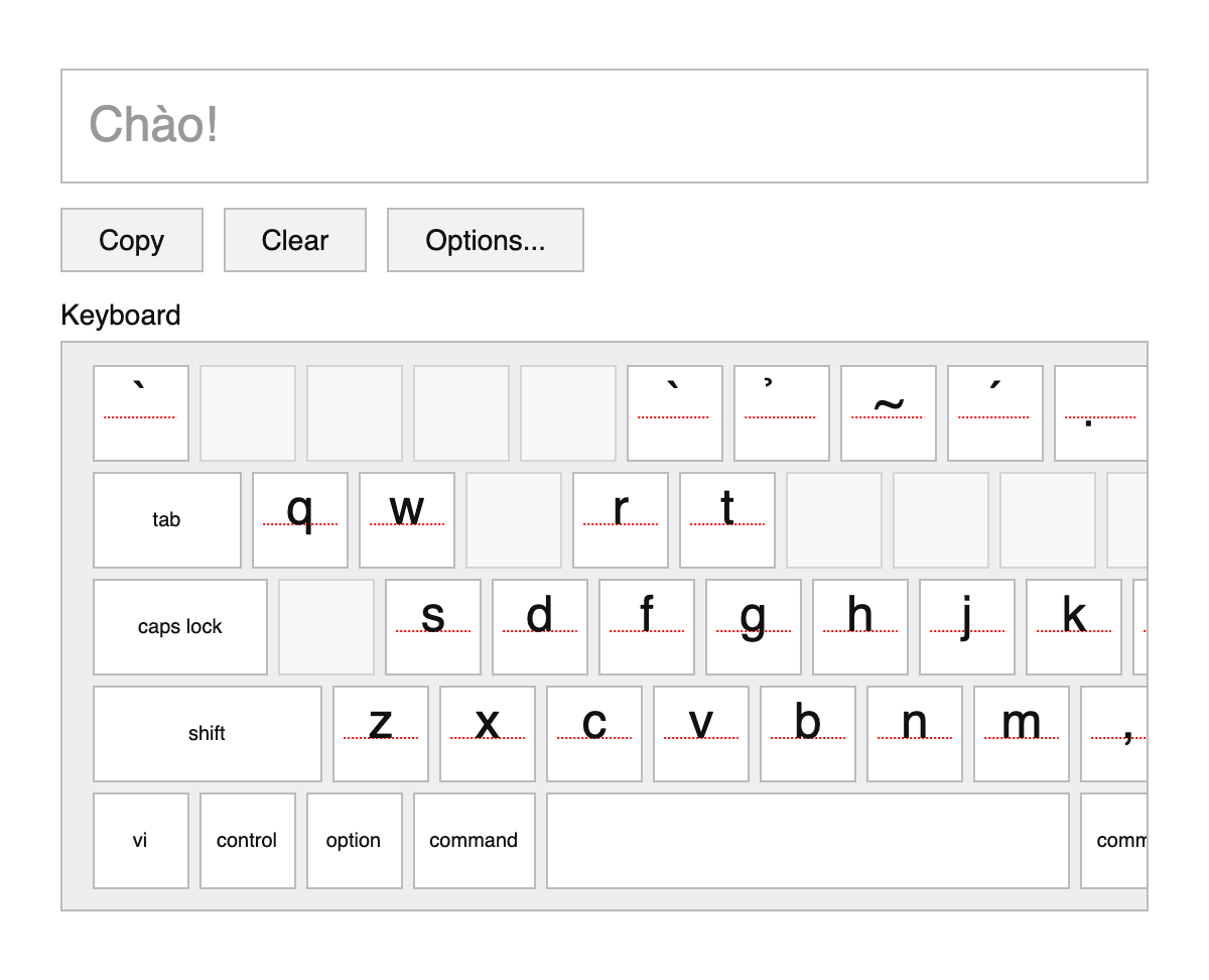 An on-screen/virtual Vietnamese keyboard for typing Vietnamese text.