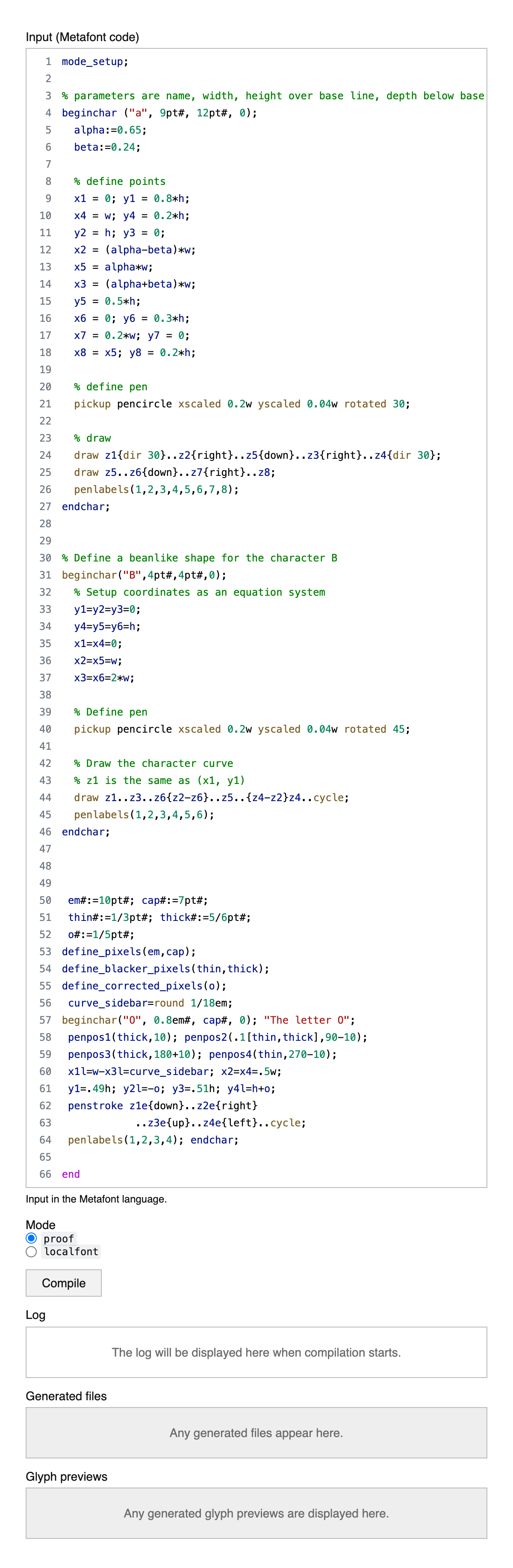 To execute Metafont code, you usually need to install the Metafont interpreter on your computer (typically as part of the TeX distribution). To make it easier to experiment with Metafont, this online tool that allows you to run Metafont code online and see the generated output.
