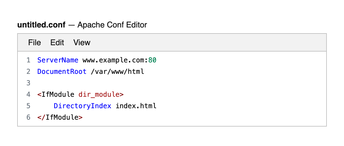 A simple online editor for Apache configuration files (.conf, .htaccess, .htgroups, .htpasswd files).