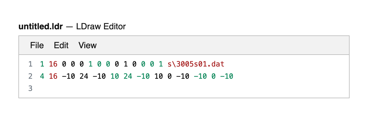 A simple online editor for LDraw text files.