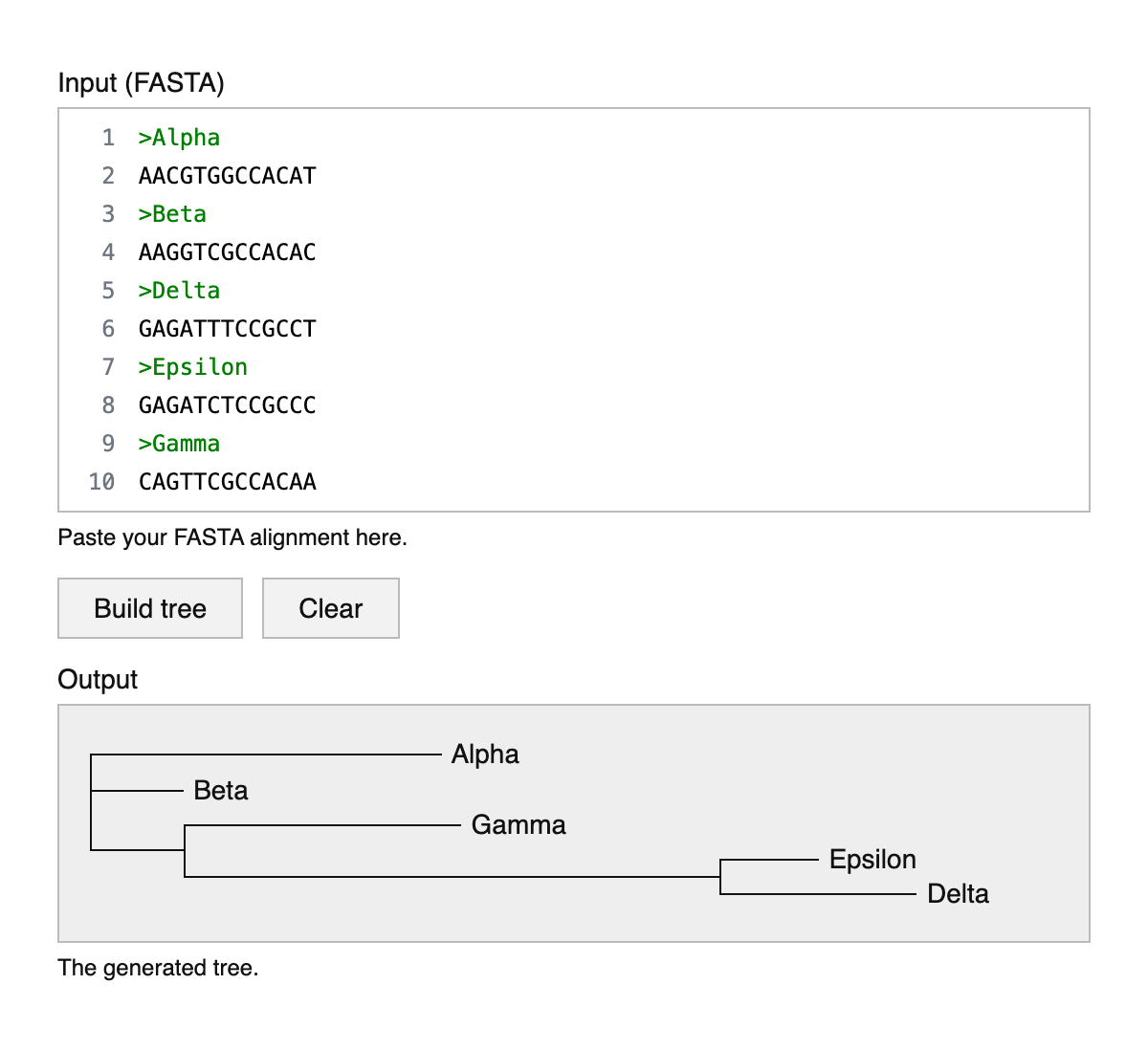 Paste your sequence alignment below and click the "Build Tree" button to generate a phylogenetic tree.
