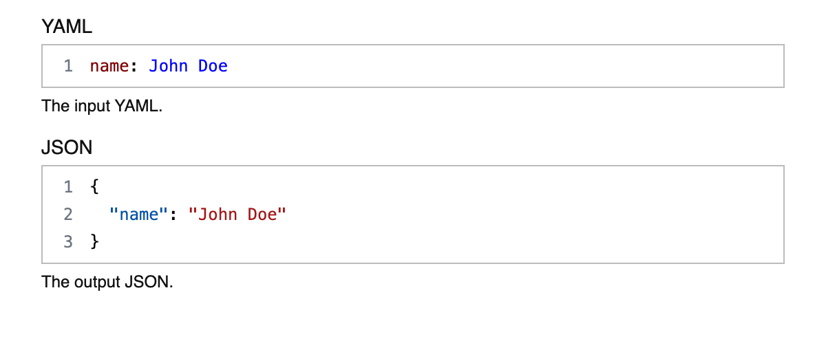 This tool converts YAML to JSON.