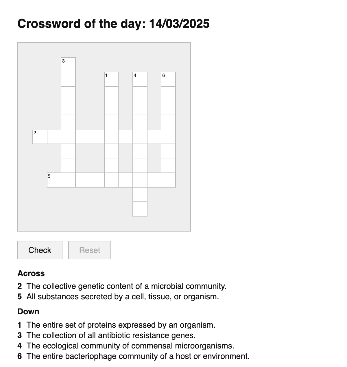 A daily crossword puzzle for microbiology terms.