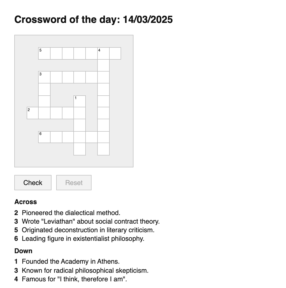 A daily crossword puzzle for the names of philosophers.