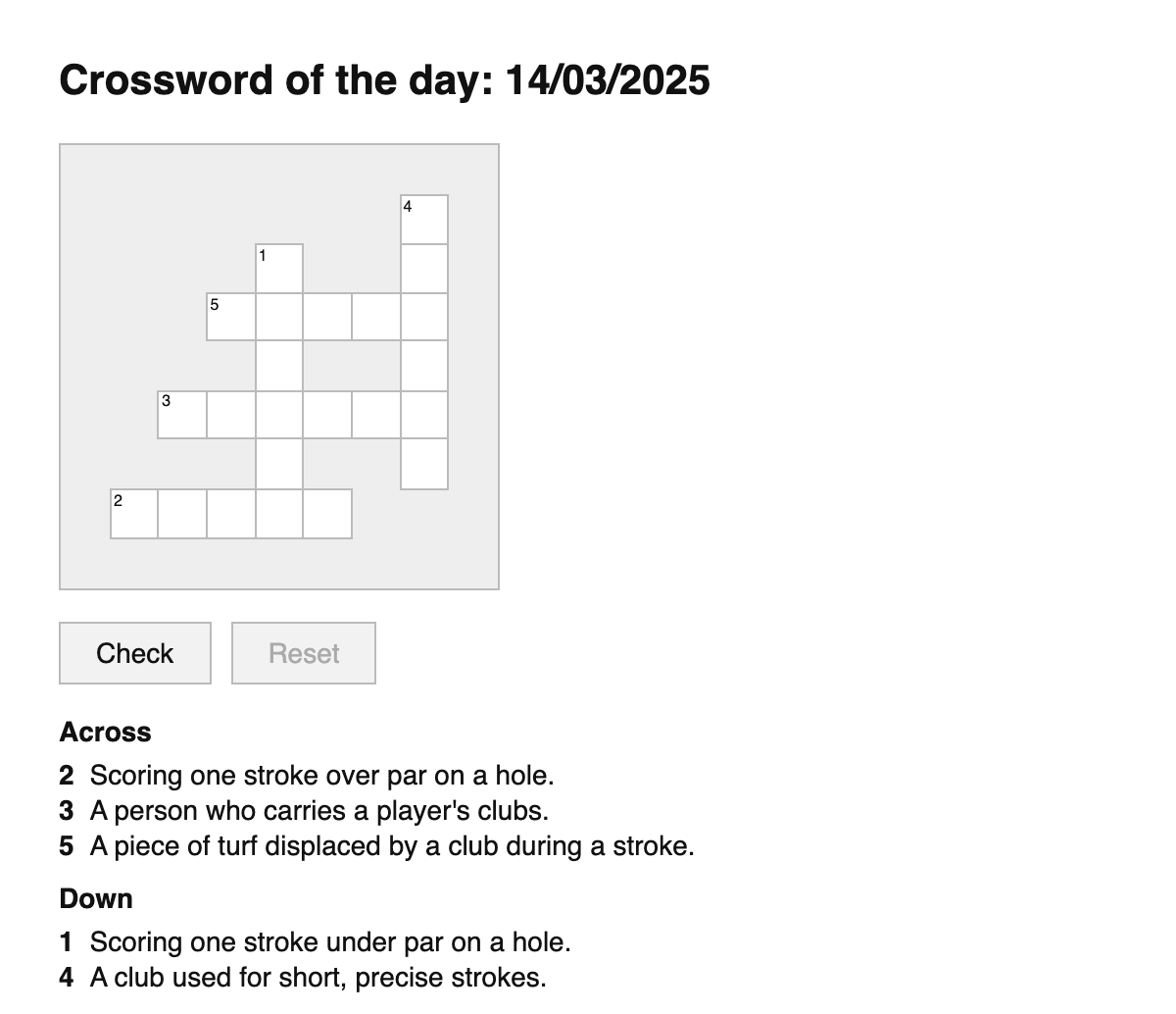 A daily crossword puzzle for golf terms.