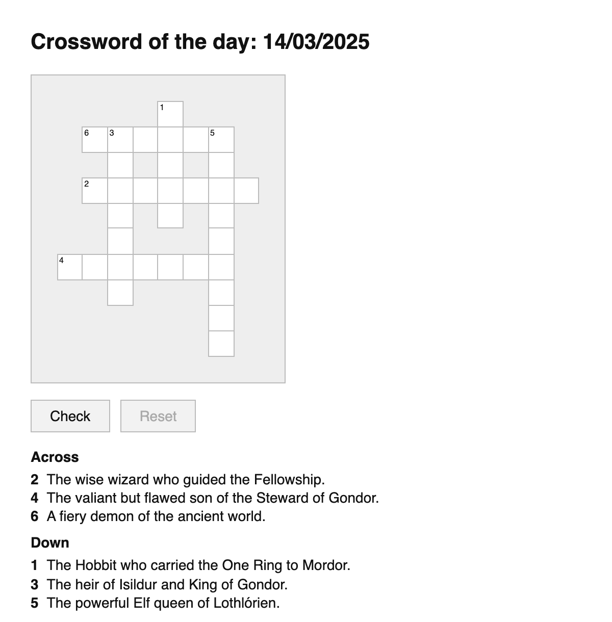 A daily Lord of the Rings themed crossword puzzle.