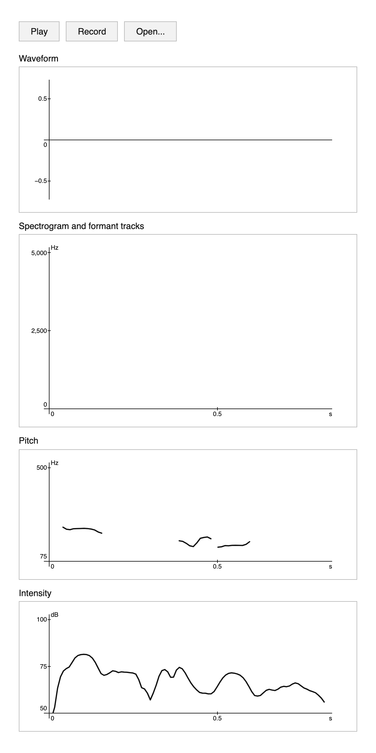 Record your audio or open an existing file to run the analysis. Make sure to allow access to your microphone if you want to record audio.